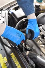 Showa-Best Glove®'s Showa 377 glove features a soft, polyester liner that's dipped in sky blue, thin nitrile to minimize liquid penetration, and it is palm-coated with a black foam nitrile for grip in oily conditions. The glove is thin for dexterity and feel and features an elastic-knit wrist.